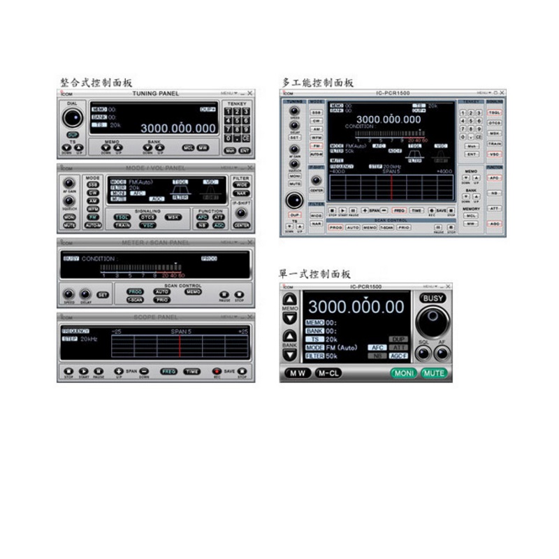 第三種為多功能屏幕,屏幕模擬一個先進的通信接收機面板,提供全部功能控制。