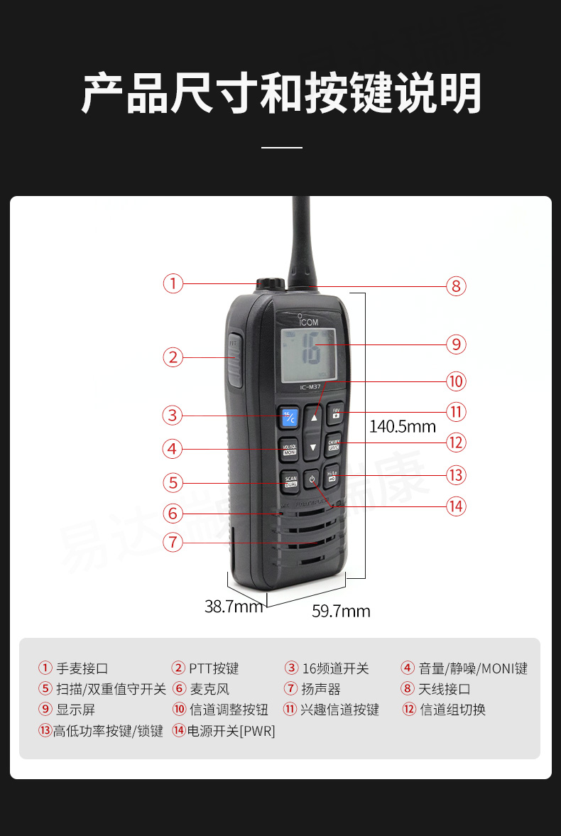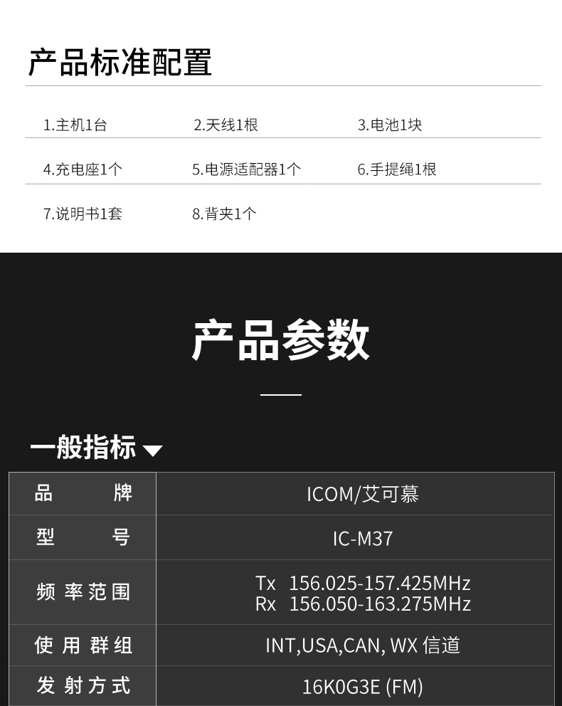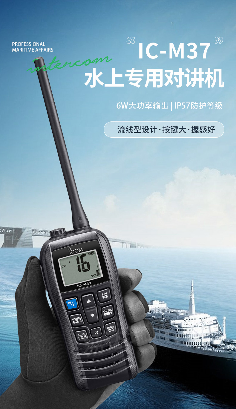 IC-M37艾可慕ICOM海事對講機手持電臺大功率輸出水上專票