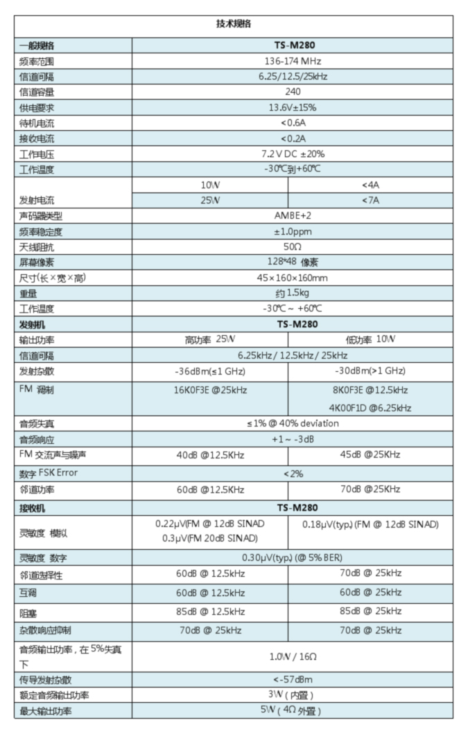TSITS天易思TS-M280車載臺(tái)