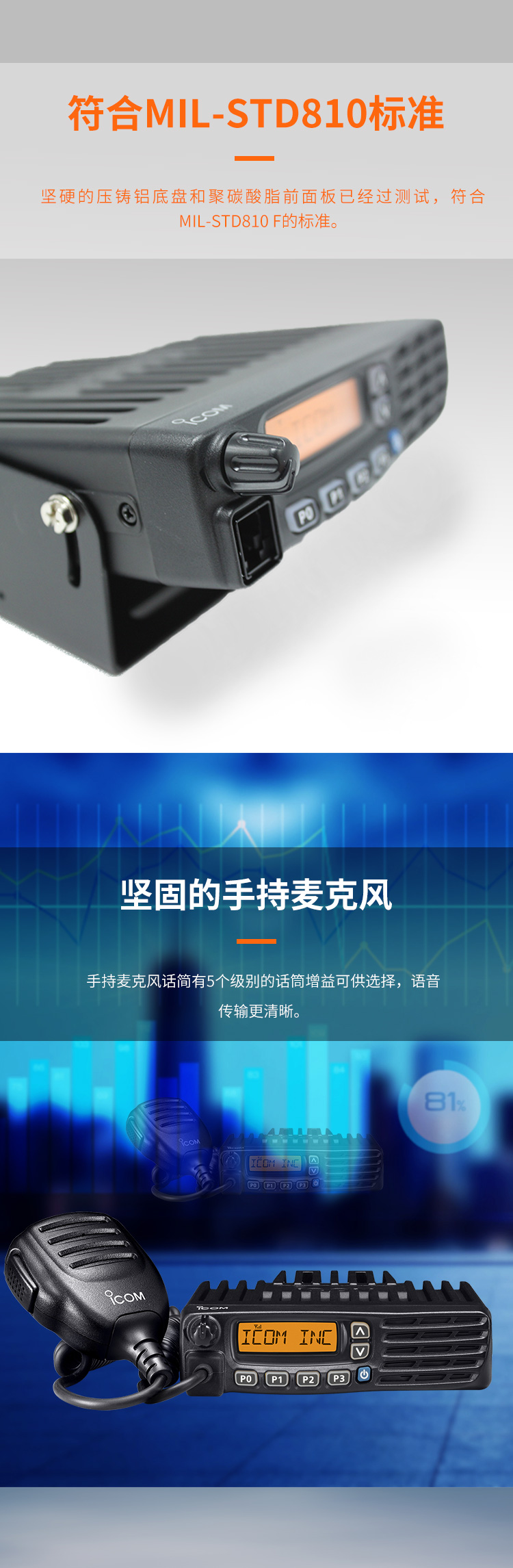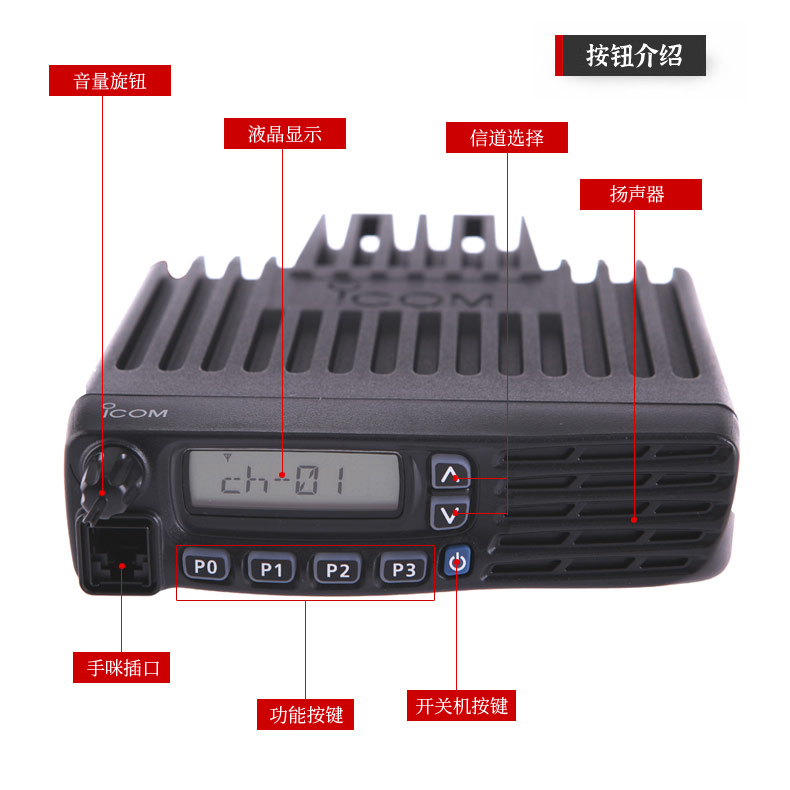 128個頻道(可分8個存儲庫),存儲方便 4W揚聲器前置輸出,聲音更清晰 信道播報,可以直接聽到信道號 堅固的用外觀,符合制造標準,結實耐用。