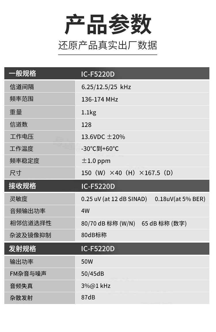 • 產品型號: IC-F5220D VHF