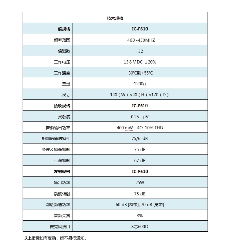 • 產品型號:IC-F610