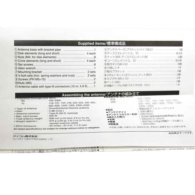 ICOM接收機用天線AH-8000接收機天線 頻率范圍100M-3300M